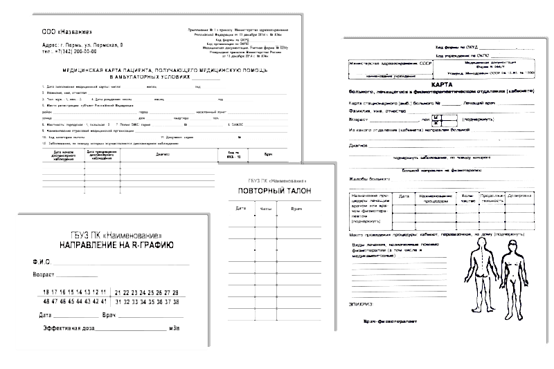 Бланки для - листы формата А4 и менее, имеющие утвержденную форму медицинских справок, личных книжек или других документов и предназначенные для последующего заполнения. Правила внесения в них сведений регулируются непосредственно каждой мед организацией.