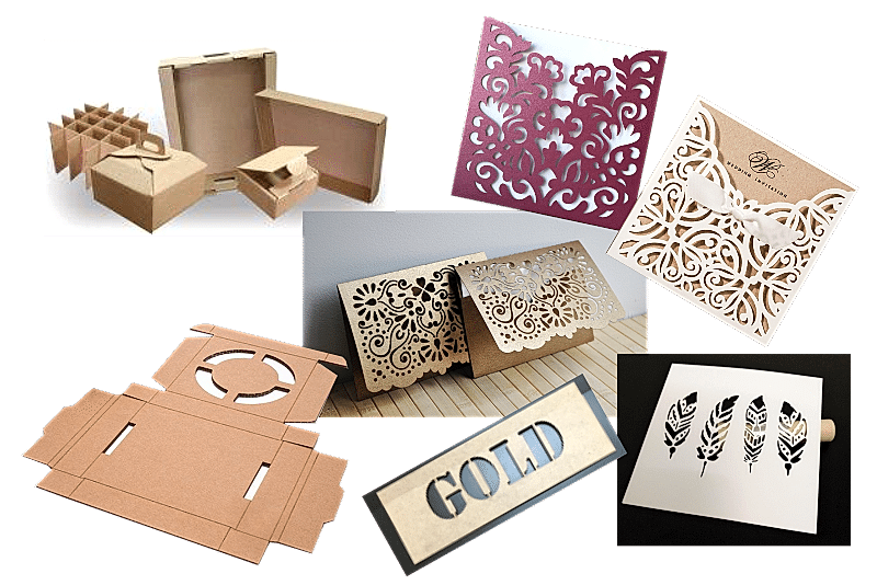 Лазерная резка бумаги и картона широко используется в рекламной и дизайнерской деятельности при изготовлении бумажных визитных карточек, открыток и приглашений фигурной формы, подарочной упаковки, декора для оформления интерьеров. С помощью этой технологии можно получить как простые, так и сложные контуры, напоминающие тонкое кружево.